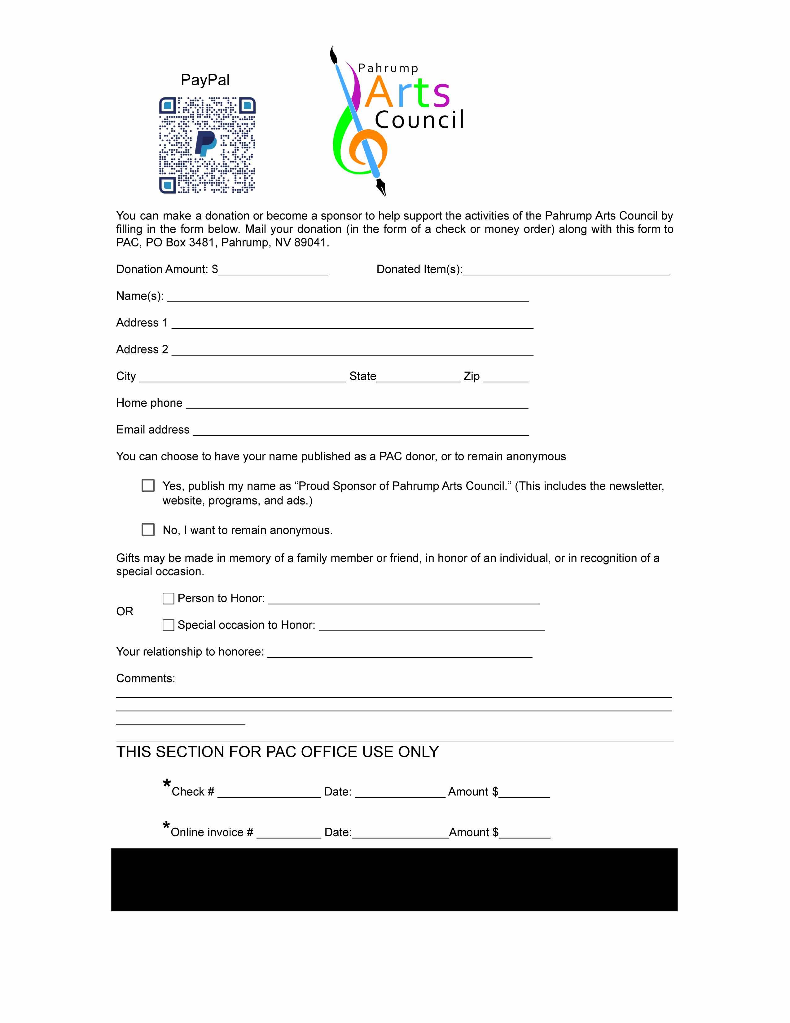 Pahrump Visual and Performing Arts Council (DBA Pahrump Arts Council) |